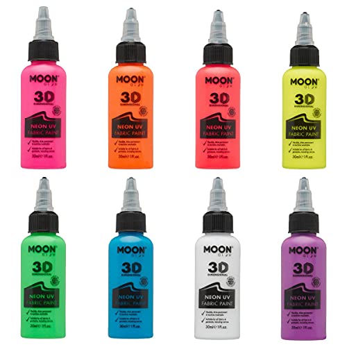 Moon Glow – Neon UV 3D tygfärg – 30 ml – textilfärg för kläder, t-shirts, väskor, skor och duk (set med 8)