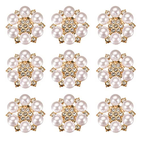 9 stycken pärlor blomma knappar kristall strass blomma knapp pärla strass knapp dekoration platt baksida knappar för smyckestillverkning kläder väskor skor bröllopsklänning GDS (1)