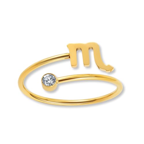 Stjärnteckenring Skorpionen guld med zirkonia för damer - 18K guldpläterad damring i 316L rostfritt stål | Justerbar ring (ringstorlek 52-60) och vattentät - inkl. presentask.