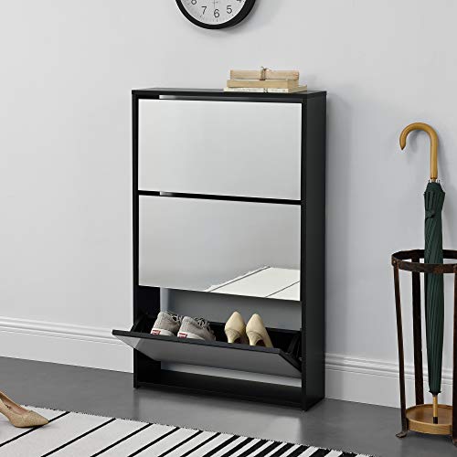 [en.casa] Skoskåp med spegel för skoförvaring, 3 lådor, 103 x 63 x 17 cm, svart
