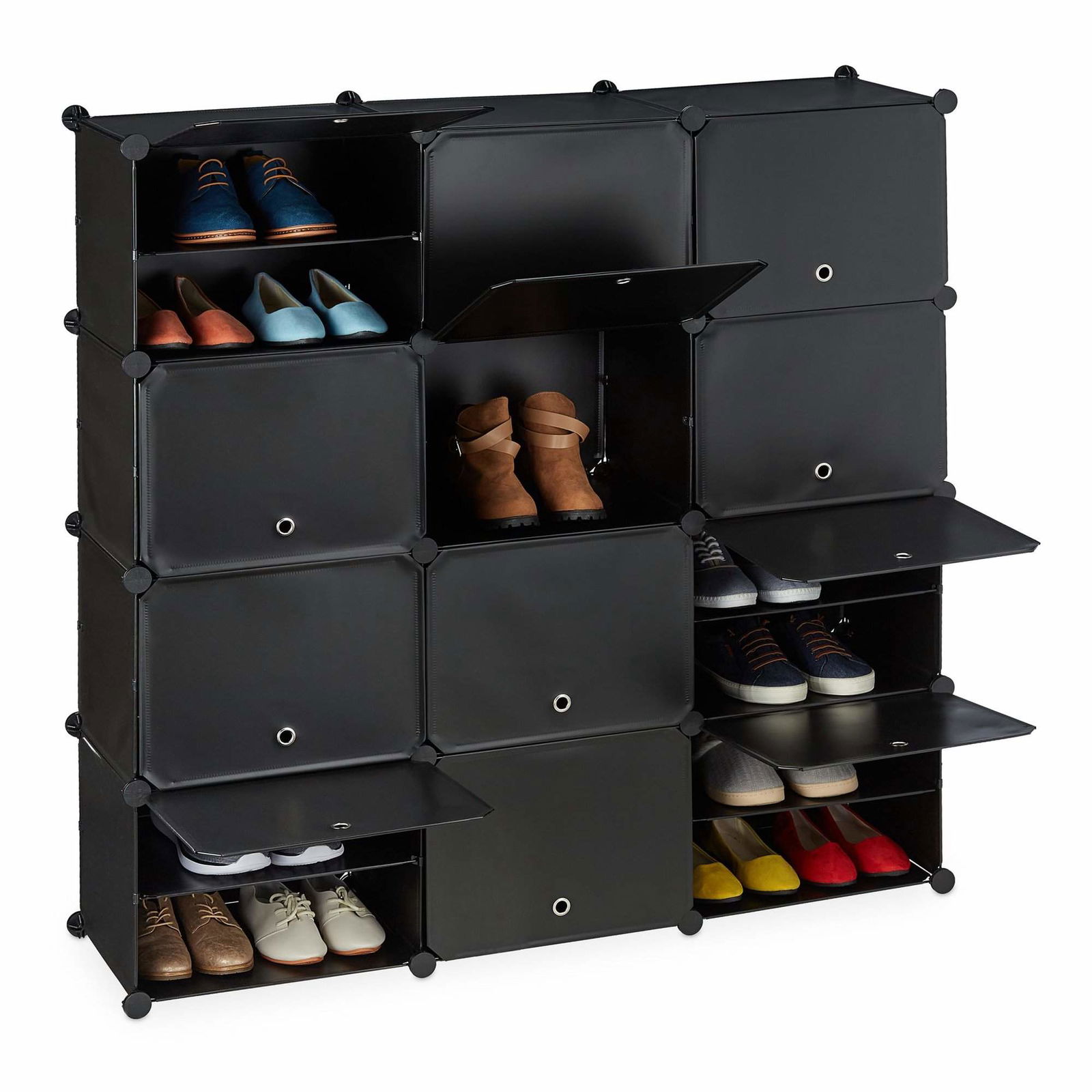 Modulärt Skoskåp 16 Fack Svart/Vit 95x37x160cm