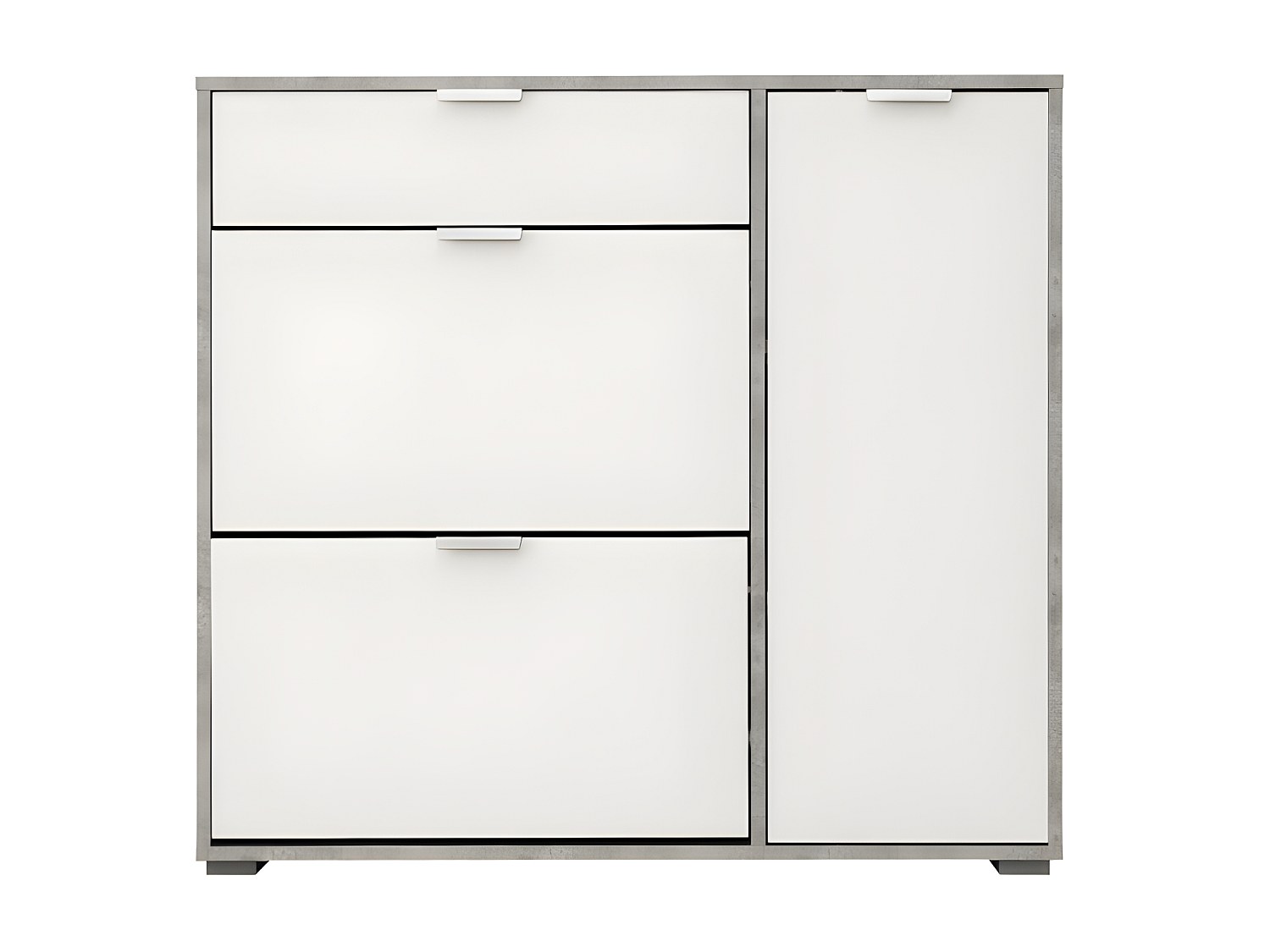 Skor skoskåp ARIETTA - 2 fällbara fack, 1 dörr & 1 låda - Vit & betong