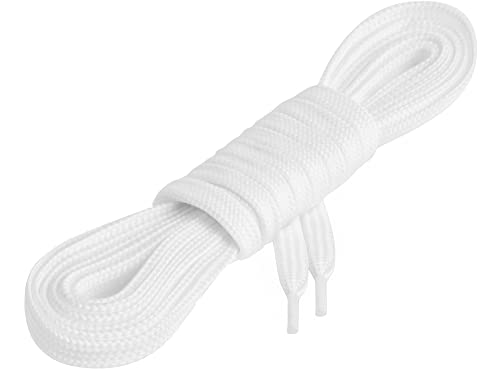 riemot platta skosnören 8 mm breda träningsskor, skor för sneakers, säkerhetsstövlar, sportskor, löpskor, ersättning tränare skostring för män kvinnor vuxna barn, 2 par vita, 59" (150 cm)