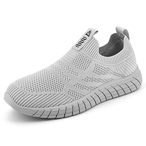 ODCKOI Slip On Sneaker män utan skosnören sneakers halkfria sportskor nät promenadskor löparskor för gator andas jogging sportskor, Ljusgrå, 46 EU