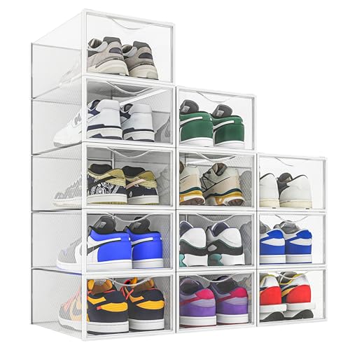 Seseno 12-pack skoförvaringskorgar, klar plast stapelbar skoorganisatör för garderob, platsbesparande vikbart skoställ, skobox sneakerhållare behållare