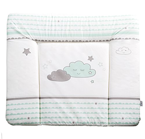 roba Skötbädd Glad Moln - Skötbädd med molnmotiv - 85 x 75 cm - Mjukt skötbäddsöverdrag PU-belagd - Mintgrön/Vit