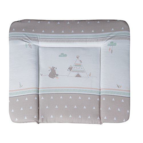 roba Skötbädd Indibjörn 85 x 75 cm - Mjukt skötbäddsöverdrag med björnmotiv - Skötbädd PU-belagd - Grå/Brun