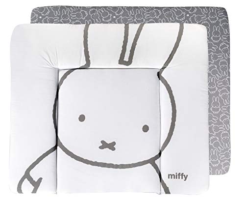 roba Skötbädd Miffy® - 85 x 75 cm - Skötbädd PU-belagd - Avtorkningsbart skötbäddsöverdrag - med kaninmotiv - Vit/Grå