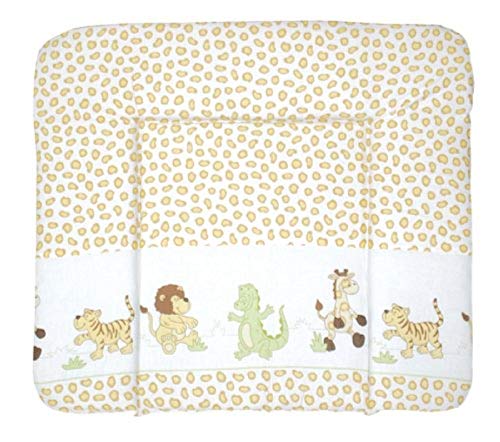 roba Skötbädd Safari 85 x 75 cm - Mjukt skötbäddsöverdrag PU-belagd - Lätt avtorkbart skötbäddsöverdrag med djurmotiv - Gul/Vit