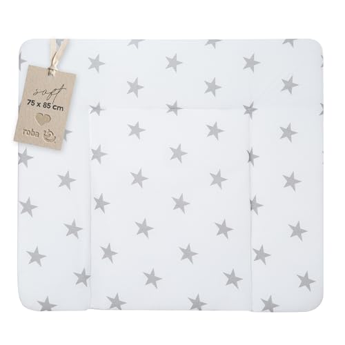 roba Folie Skötbädd Lilla Stjärnor - 85 x 75 cm - Ftalatfri skötbädd med stjärndesign - Mjukt skötbäddsöverdrag i Grå/Vit