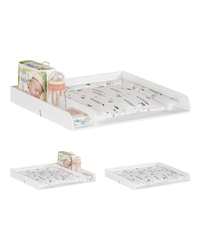 WOLTU Skötbord, 80x78,5 cm, Skötbord för byrå (djup: 46,5-50 cm), Avtagbar skötbricka, med tippskydd, vit