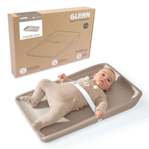 Skötbädd för barn 50X70. Skötbädd, mjuk, lätt att rengöra. Skötbädd vattentät med säkerhetssele. Bärbar skötbädd 70x50 för skötbord och byrå. Skötbädd i silikon Beige Alondra