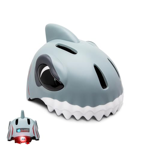 Crazy Safety Cykelhjälm för barn | barnhjälm 6–12 år gammal, cykelhjälm, skateboard, cykling, racing, skoter, rullskridskor | lätt justerbar 3D-hjälm med djur 54–59 cm (grå haj)