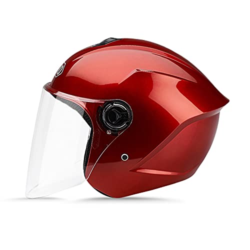 LIONCIANO Motorcykelhjälm med skyddsglasögon, jethjälm, skoterhjälm, mopedhjälm, mopedhjälm, har klarat trafiksäkerhetstestet för att effektivt skydda huvudsäkerheten (rubinröd)