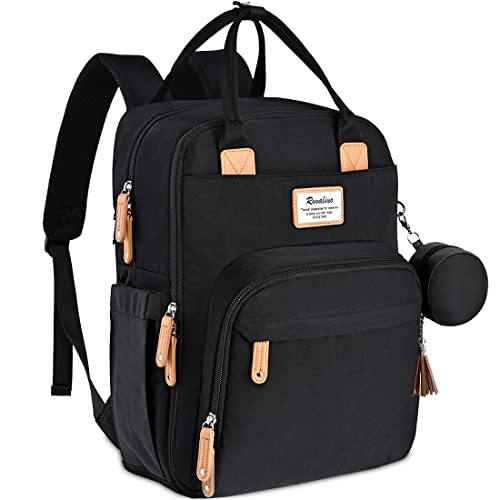 RUVALINO Baby skötryggsäck, skötväska, ryggsäck med bärbar skötdyna, napphållare och barnvagnsremmar, babyväska, multifunktionell för mamma och pappa, svart