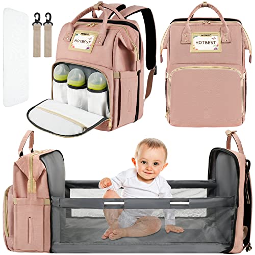 Guniata skötväska, ryggsäck, skötryggsäck med sängfunktion med 6 fack sidofickor, bärbar, vikbar, stor baby skötryggsäckar av oxfordtyg, 45,9 x 30,9 cm, för spädbarn, pojkar och flickor, ROSA, L