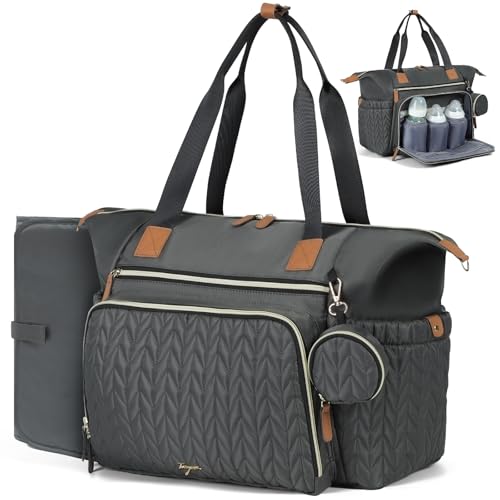 Tonyeee Skötväska med nappfack och skötbädd, skötryggsäck, multifunktionell babyväska, stor reseskötväska för mamma och pappa, med isolerade fickor, mörkgrå