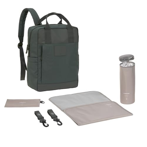 LÄSSIG Baby skötryggsäck med skötunderlag, barnvagnsfäste och flaskhållare/GRE Slender Up Backpack oliv
