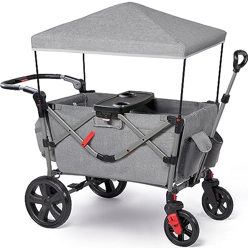 EVER ADVANCED Handvagn för 2 barn, vikbar med tak, barnvagn, 2 x 5-punkts säkerhetsbälte med skötryggsäck, handvagn med säte, handvagn, transportvagn, dra och tryck, fotbroms