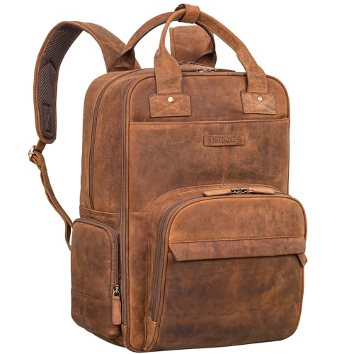 STILORD "Fiena" läder skötryggsäck stor kvinnor – stor babyryggsäck och blöjryggsäck – elegant skötväska i vintagestil – läderryggsäck av äkta läder för mammor, Avani – brun, XL