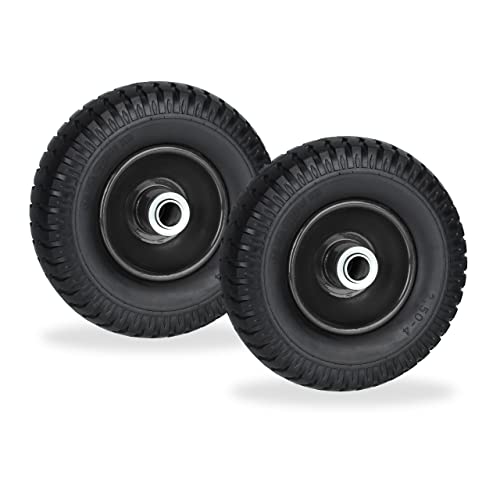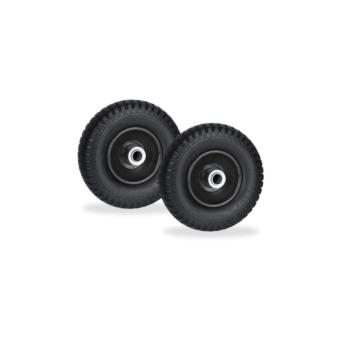 Relaxdays skottkärra hjul 2,50-4, uppsättning av 2, massivt gummihjul, stålfälg, reservhjul skottkärra, punkteringssäker, 80 kg, svart