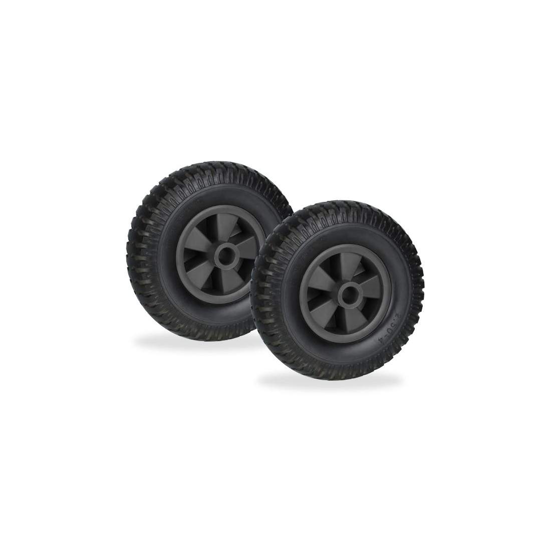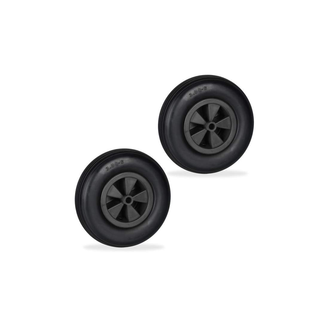 Relaxdays skottkärra hjul 2,50-4, set om 2, massivt gummihjul, plast, reservhjul skottkärra, punkteringssäker, 80 kg, svart