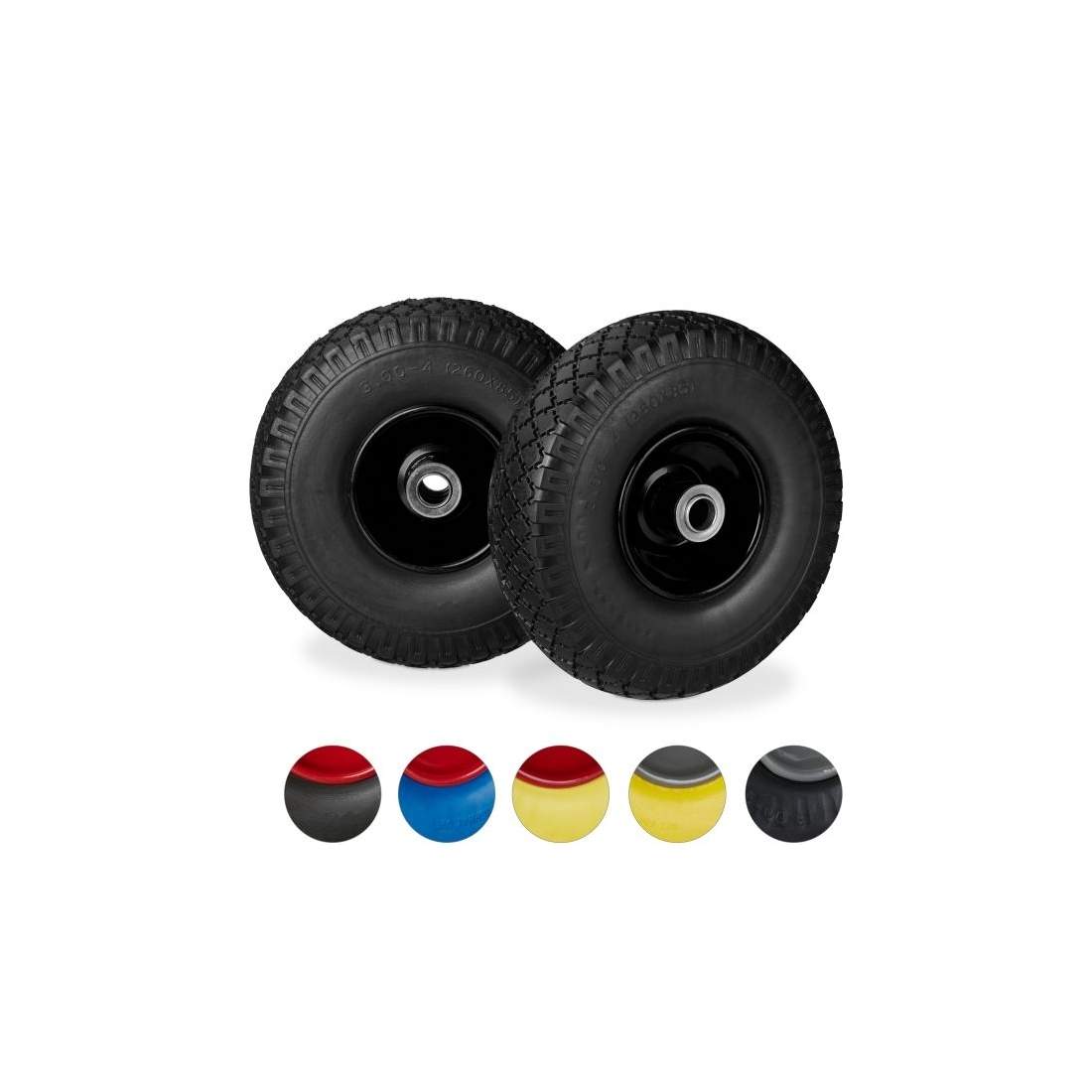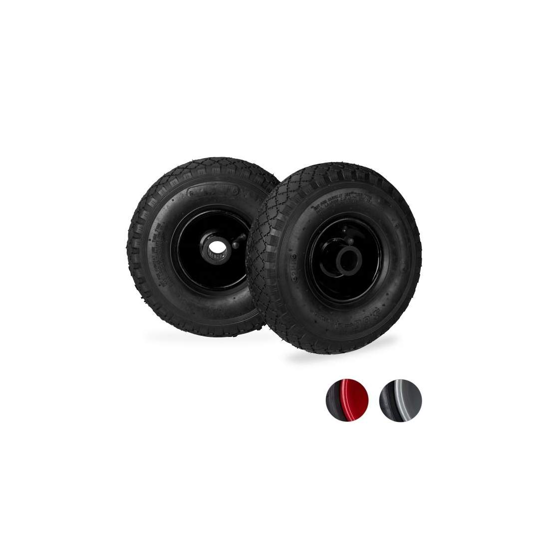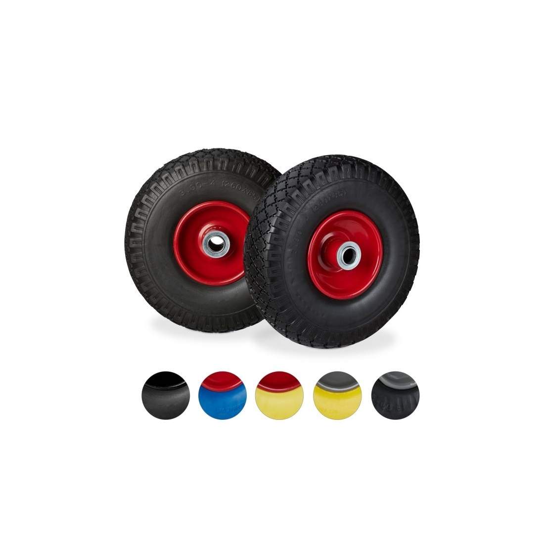 Relaxdays 2.50-4 skottkärra hjul, uppsättning om 2, massivt gummi med plastfälg, rulle, 80 kg, svart röd