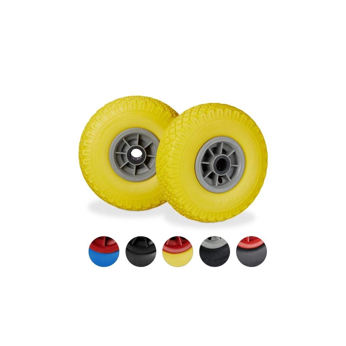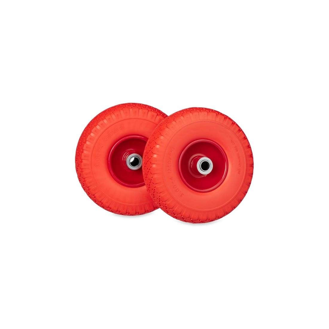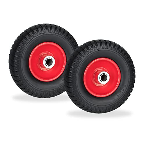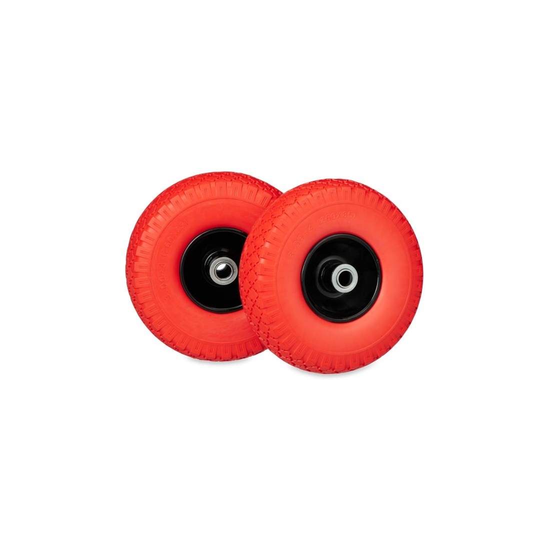 Relaxdays 2.50-4 skottkärra hjul, uppsättning om 2, massivt gummi med plastfälg, rulle, 80 kg, svart röd
