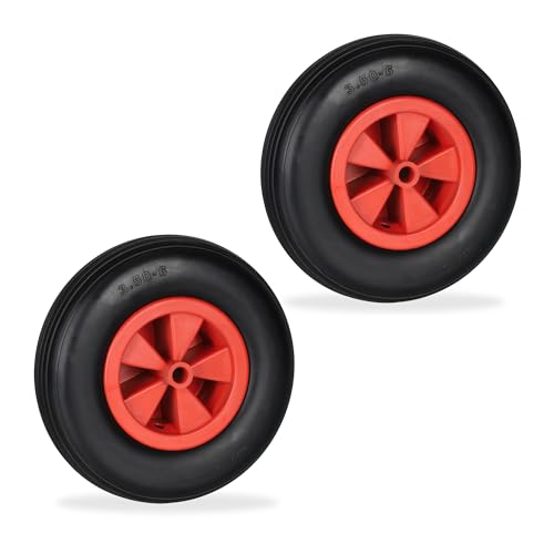 Relaxdays skottkärra hjul 3,50-6, uppsättning av 2, massivt gummi, plastfälg, reservhjul, punkteringssäker, upp till 100 kg, svart/röd