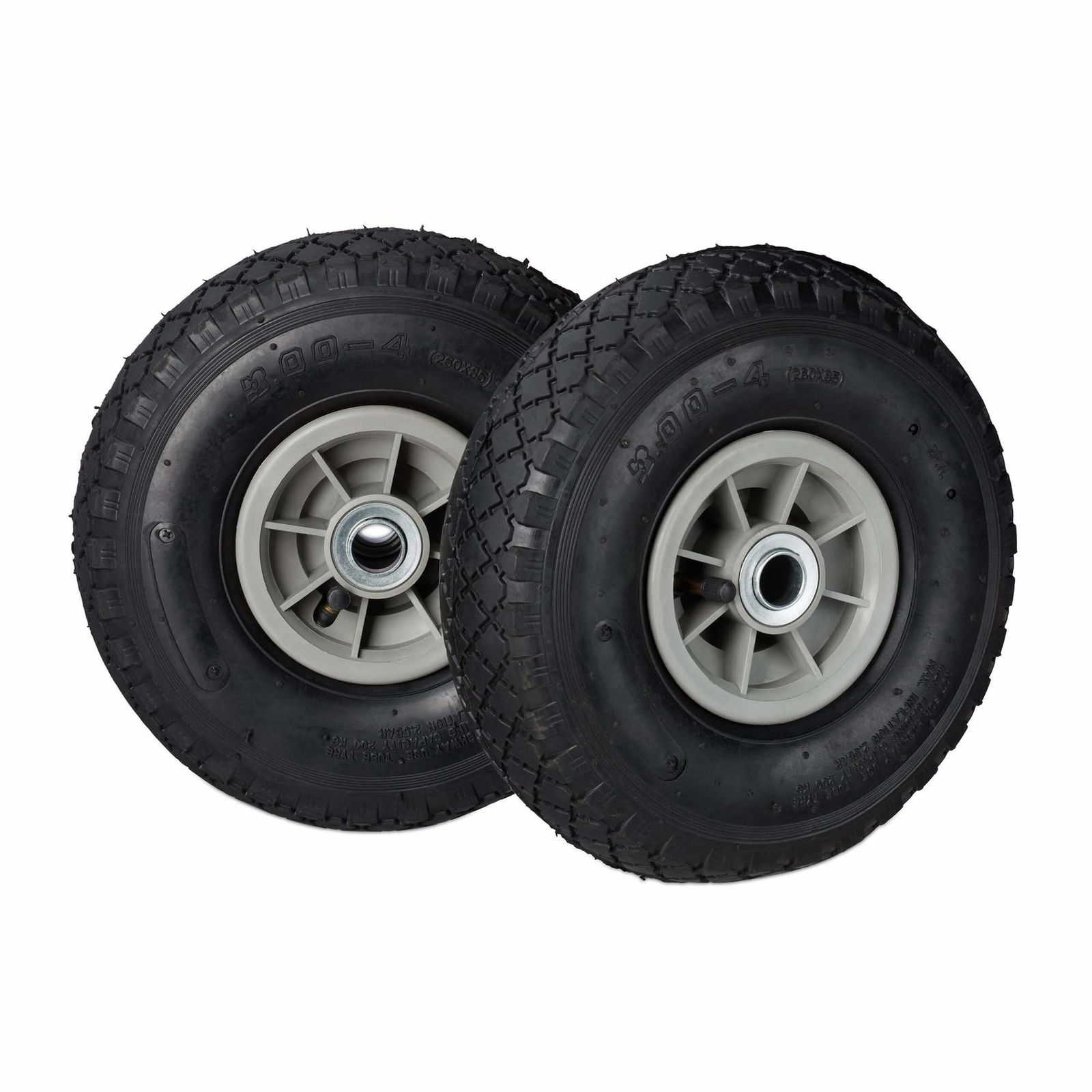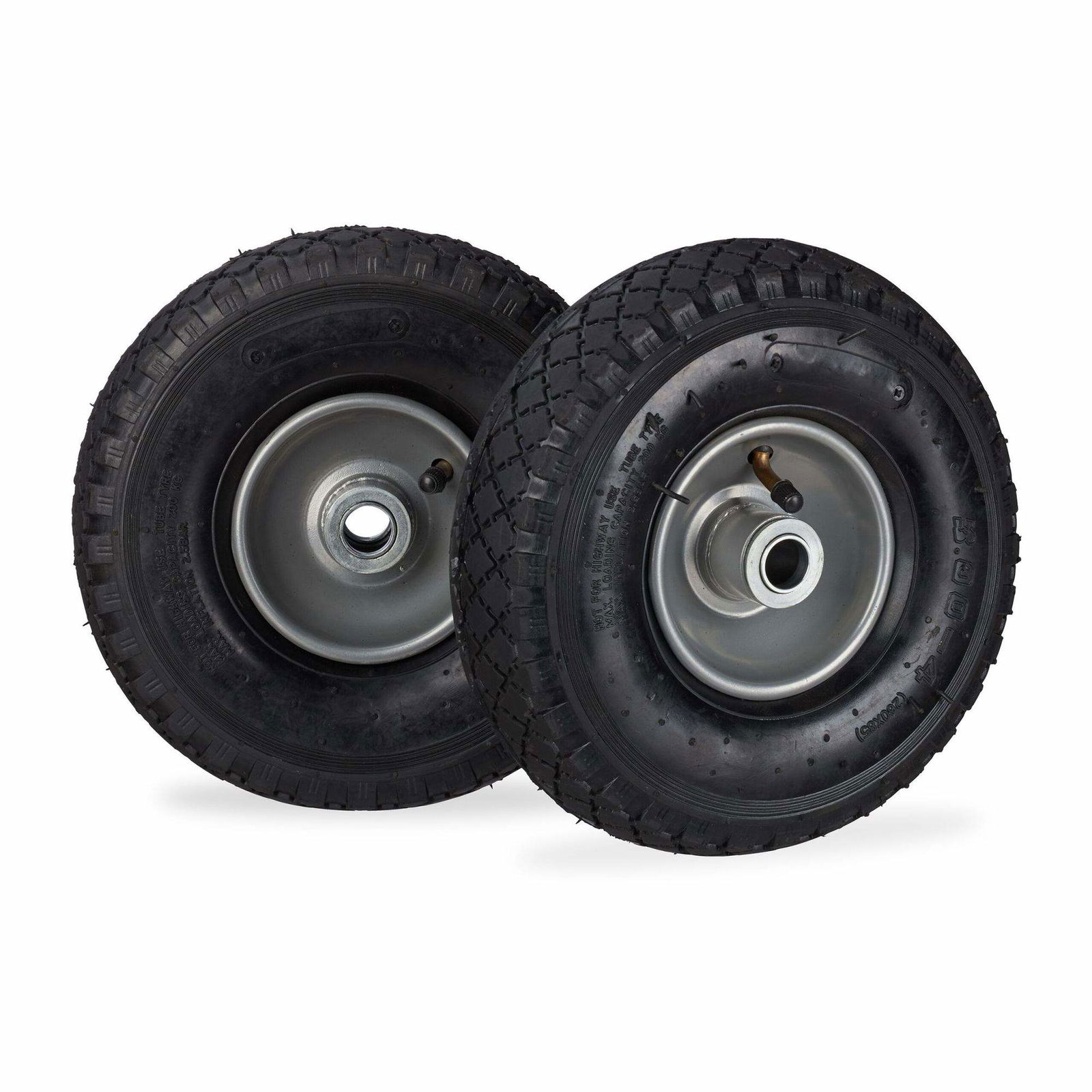 Relaxdays Skottkärrehjul 4,80 4,00-8, luftdäck, stålfälg, hjul med axel, reservhjul skottkärra, upp till 120 kg, svart, 39 x 39 x 9 cm