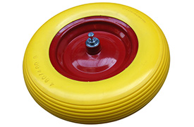 Punkteringsfritt skottkärrehjul 3.00-4, gul-blå