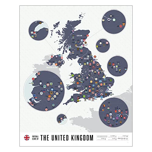 HJZWTS Popdiagram | Storbritanniens fotbollsklubbar | 40 cm x 50 cm konstaffisch | 100+ fotbollsklubbar från England, Skottland och Wales på en karta | Väggdekor | 100% tillverkad i USA