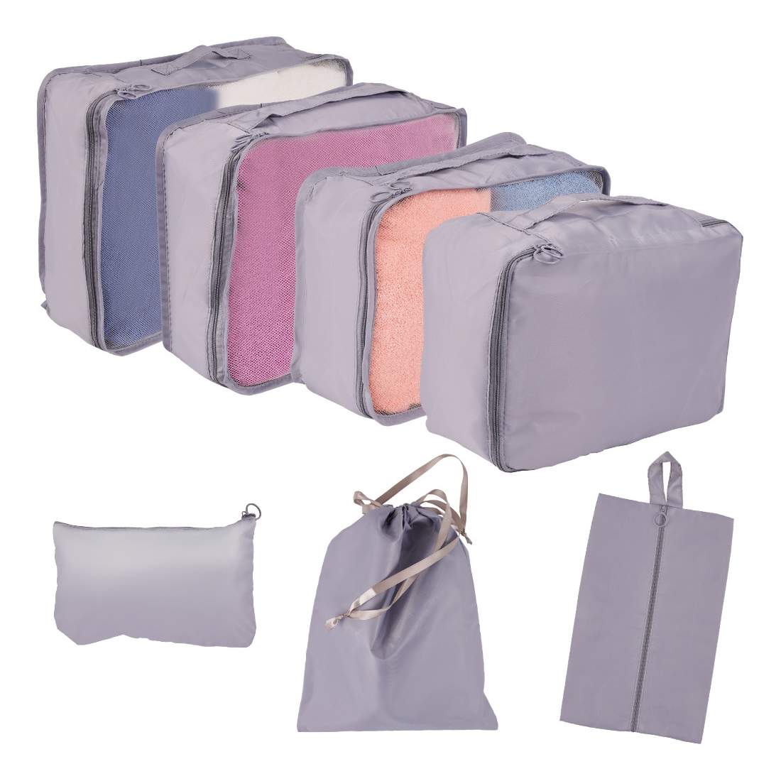 Resväska arrangörer reseset 7 delar kläder förvaring tillbehör vattentäta väskor necessär skoväska grå