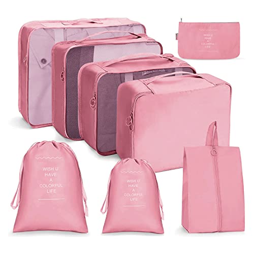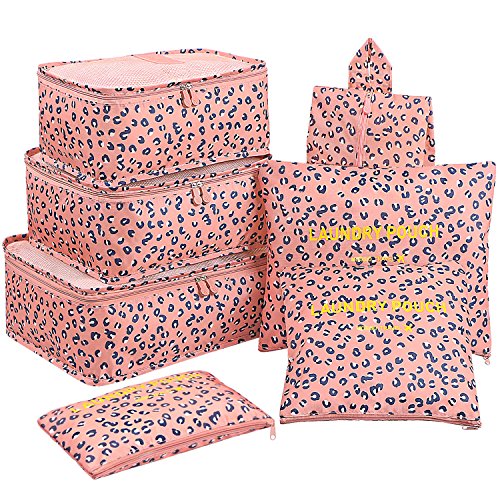 Mossio 7 set packkuber med skoväska – resehandbagage organisatör, rosa leopard, en storlek