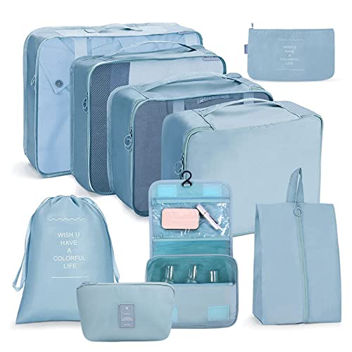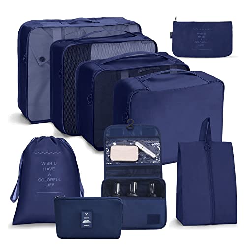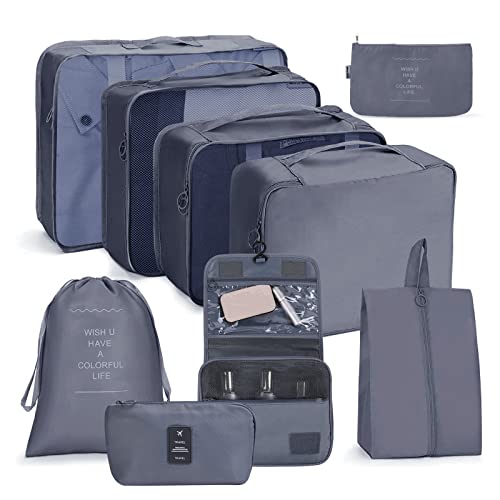 8 set packkuber för resväskor, kingdalux resebagage packningsorganisatörer med tvättväska, komprimering skoväska, klädunderkläder väska, för män och kvinnor