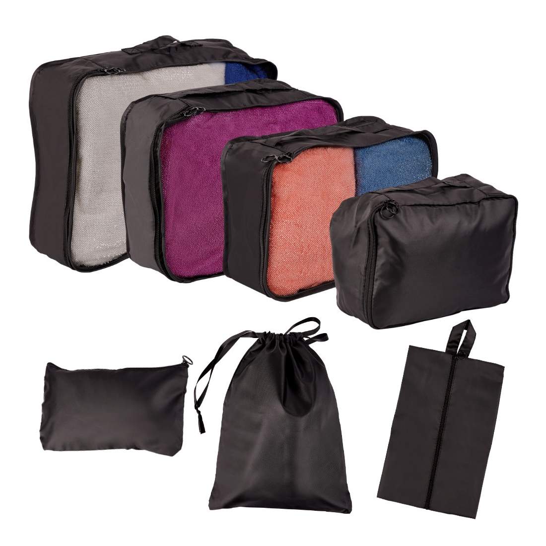 Resväska arrangörer reseset 7 delar kläder förvaring tillbehör vattentäta väskor necessär skoväska svart
