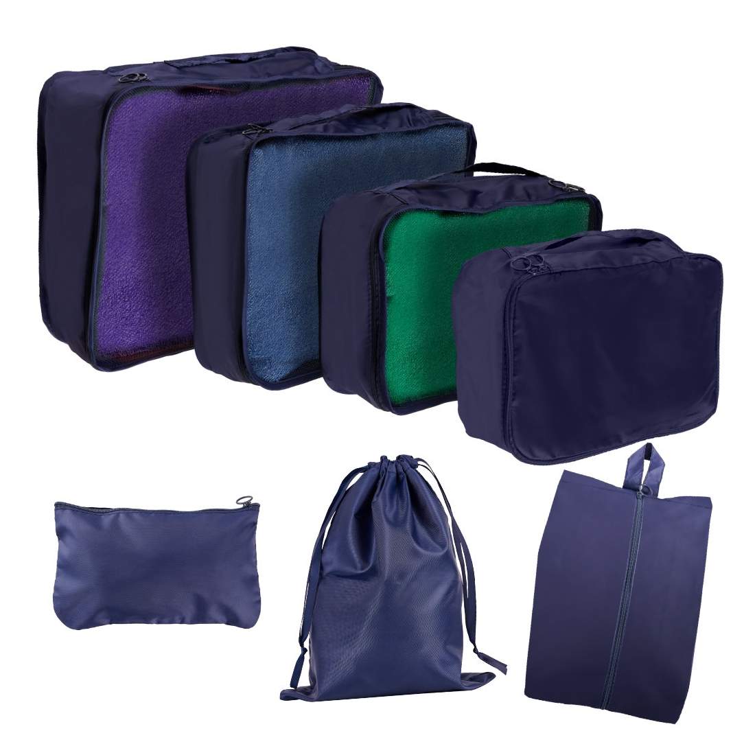 Resväska arrangörer reseset 7 delar kläder förvaring tillbehör vattentäta väskor necessär skoväska marinblå