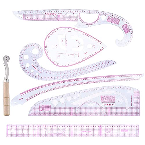 Knowing 7 stycken skräddarlinjal, klädset i plast, franskt metrisk linjalset, skrädderi skärlinjal, 7 specifikationer, för sömnad och skärning av tyg