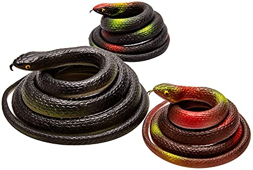 SAVITA 3 stycken realistiska gummiormar 2 storlekar ormleksaker för skämt, trädgårdsrekvisita för att skrämma fåglar, stråk, halloweenfest