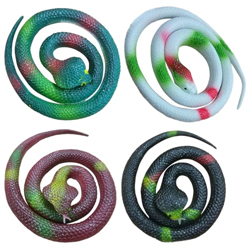 4 st realistiska elastiska gummiormar gummiormar flerfärgade konstgjorda gummiormar för trädgård för att skrämma bort fåglar, skämt, halloweenfest