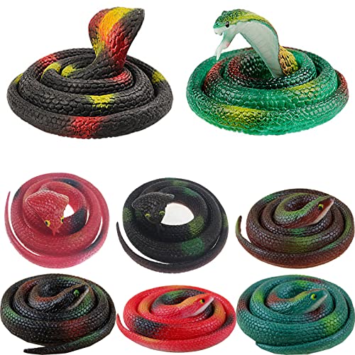 YouYuer 8 stycken realistiska gummiormar och plast - falska leksaker för trädgårdstillbehör, skrämma fåglar, fyllningar och halloween-dekoration