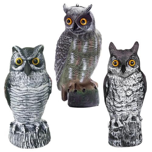 Xoeryoy 3-pack uggla realistisk uggla staty 3 stilar lurviga att skrämma bort duva fågel avskräckande fågelskrämma plast fågelskrämmare dekor för trädgård, uteplats, staket, gård