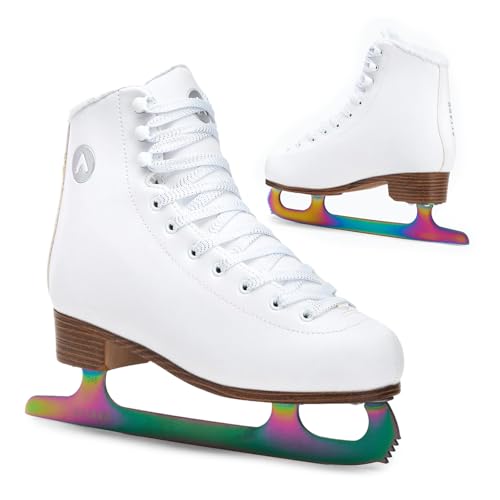 ATTABO Konståkning skridskor damer lilja i vitt storlek 40 EU avancerade skridskor snörstängning stark fotledsstöd hållbara rostfria skenor klassisk design