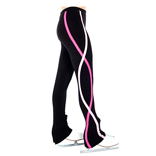 LIUHUO Skridskobyxor för flickor konståkning träningsbyxor plus sammet skridskor byxor, Rosa, 8-10 år