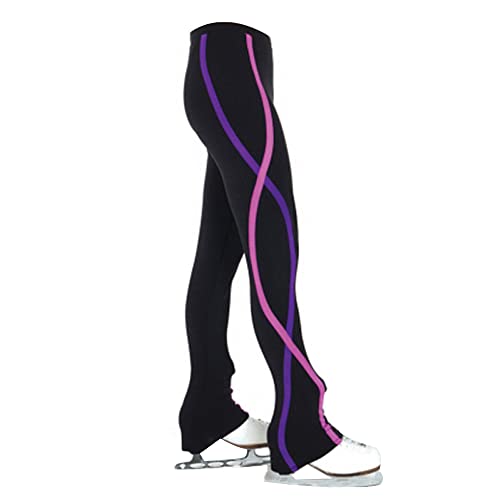 LIUHUO Skridskobyxor för flickor konståkning träningsbyxor plus sammet skridskor byxor, Lila, 10-12 år