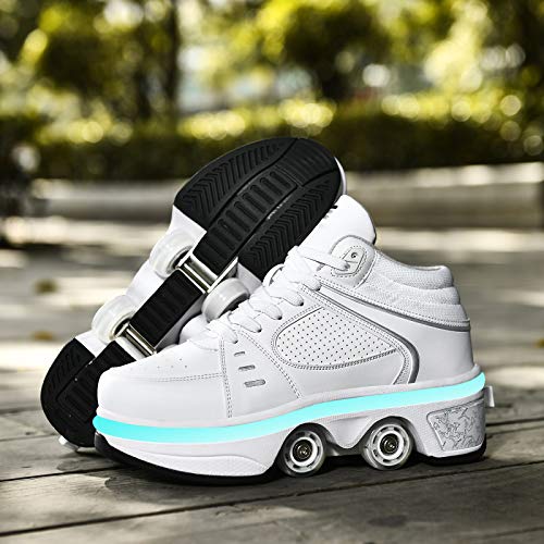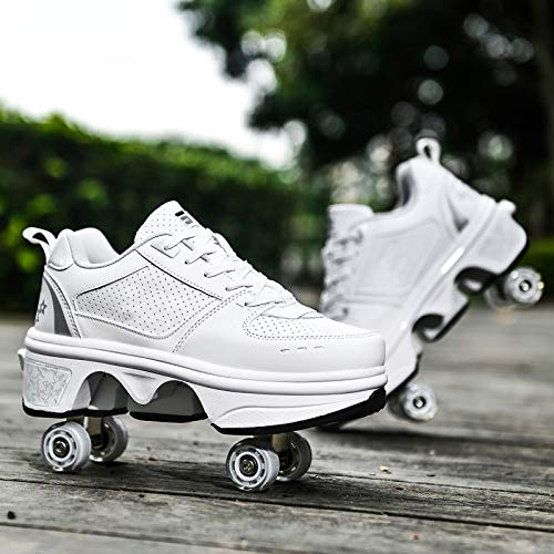 JTKDL Rullskor skridskor för kvinnor män, pojkar barn hjulskor rullsneakers skor, för unisex nybörjargåva, silver-EU 36/UK 3
