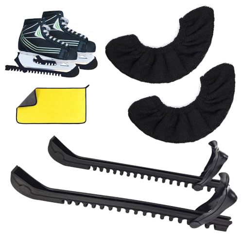 Skridskoskydd & Soakers & Handduk Kit, Hårda Skridskovakter Beskyddare och Mjuka Skridskoblad Omslag Hockeyskridskor Konståknings Tillbehör för Män Kvinnor (Svart)