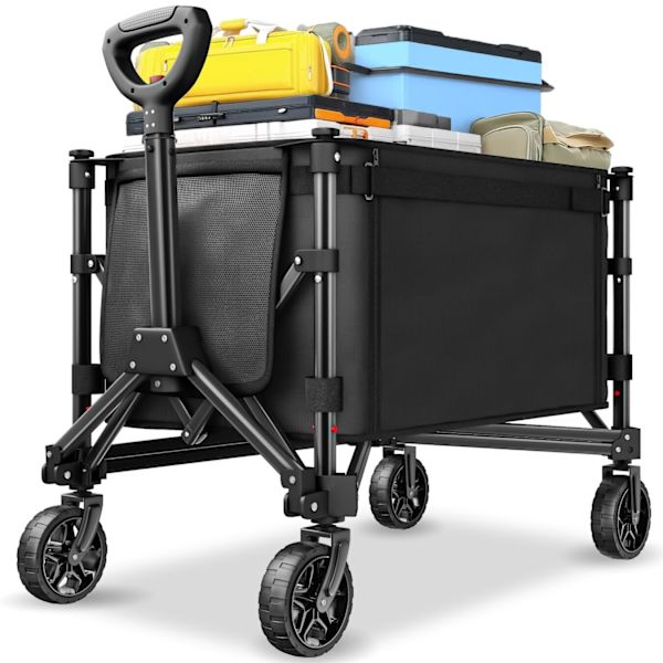 Toboli Hopfällbar skrinda offriad svart transportkärra 100 kg lastkapacitet, handvagn för strand, trädgård, inköp