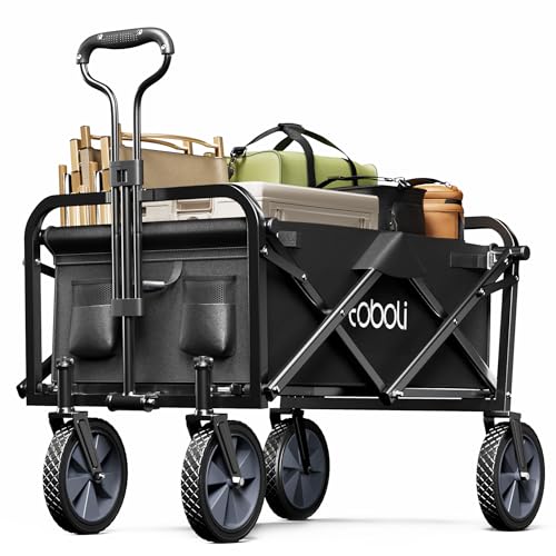 Wiltec Hopfällbar skrinda 110 x 50 x 121 cm med extra breda hjul och handtag dragkärra med 80 kg lastkapacitet terränggående transportkärra för utflykt och camping