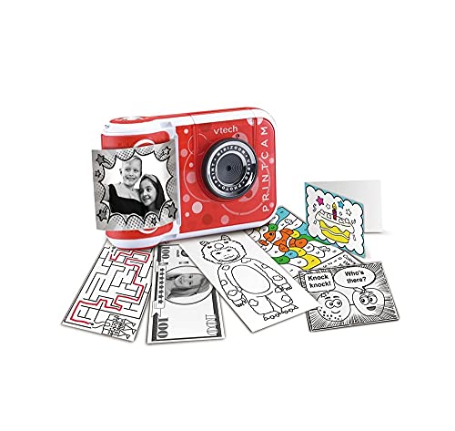 VTech KidiZoom PrintCam (röd), digital snabbkamera för barn med inbyggd skrivare, videoinspelning, specialeffekter, roliga spel och serietidningstillverkare, uppladdningsbart batteri, ålder 5 år +